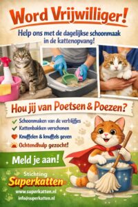 Vrijwilligers gezocht!! 9 maart 2026 Diana Mudde Algemeen Gerelateerde berichten Voorjaarsmarkt 21 maart DE VOORJAARSMARKT BIJ STICHTING SUPERKATTEN Zaterdag 21 maart van 10.00 tot 18.00 uur, is er… Inloopmiddagen 2026 Inloopmiddag 🐾🐱 Op de laatste zaterdag van de maand, is er inloopmiddag bij stichting Superkatten,… Opbrengst Digicollecte 2025 Opbrengst Digicollecte 2025 Dankzij onze donateurs heeft de Digicollecte dit jaar het geweldige bedrag van…